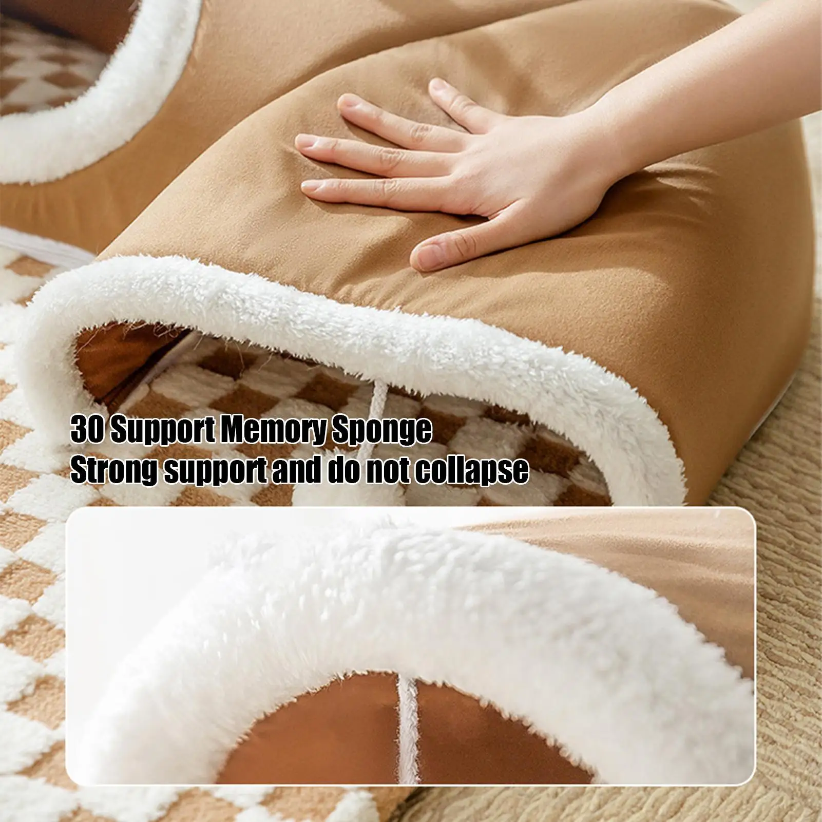 Crafted with thermal cotton and high-density memory foam, this bed locks in warmth and maintains its shape. The ultra-soft plush lining provides a soothing, heated feel — ideal for colder months.